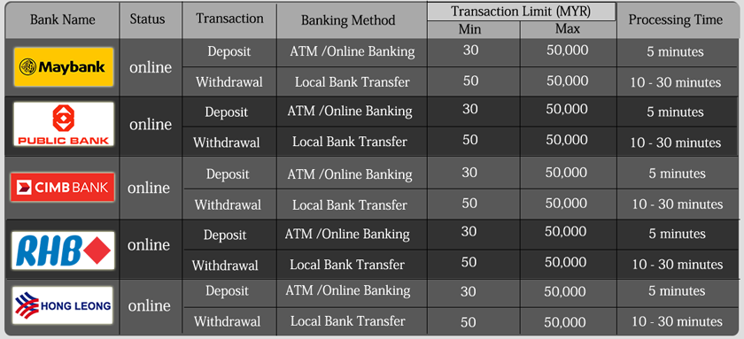 MQQ88 is renowned for its efficiency in transaction speed and customer satisfaction. We are trying our very best to maintain it that way. Below are list of banking details provided in Malaysia.